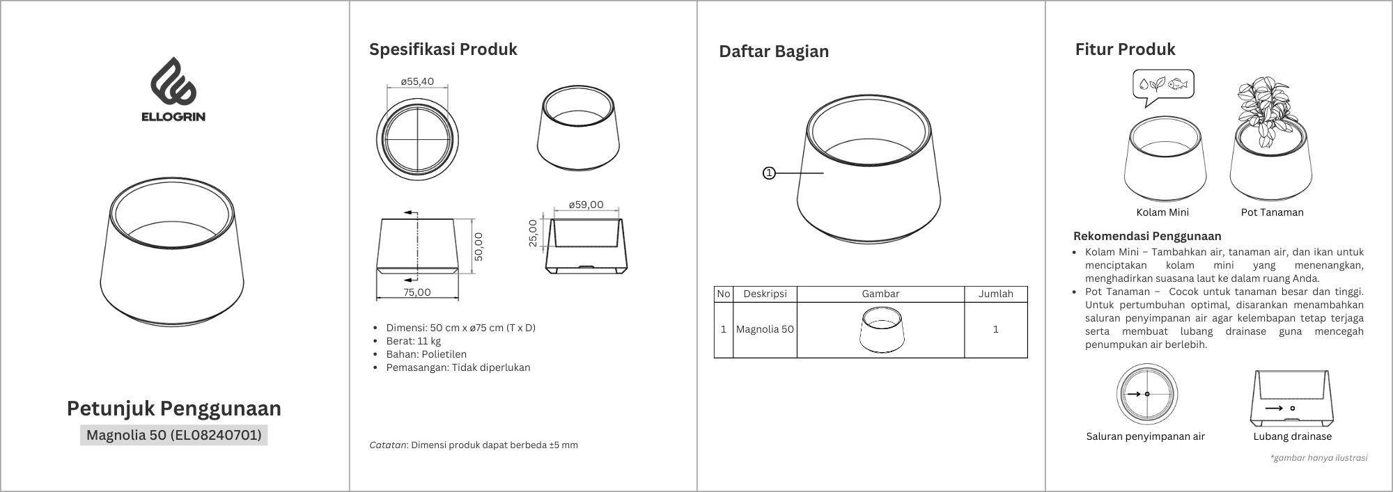 Hadirkan estetika dan fungsionalitas ke ruang Anda dengan Magnolia 50 furnitur multifungsi yang dapat menjadi pot dan meja. Dengan diameter 70cm, Magnolia 50 cocok dipadukan dengan tanaman tinggi atau menciptakan inspirasi unik seperti mini pond. Tersedia dalam warna granit yang elegan dan minimalis, Magnolia 50 adalah pilihan sempurna untuk dekorasi interior maupun eksterior rumah Anda.Â